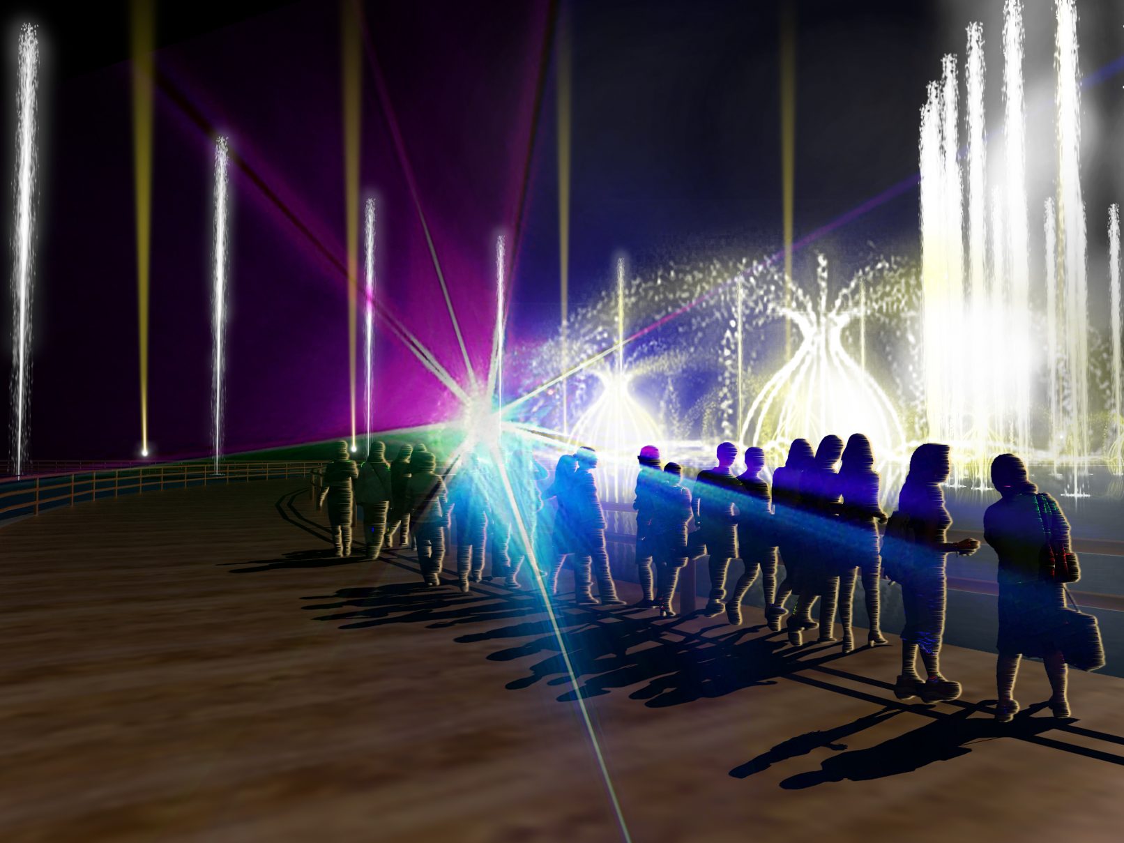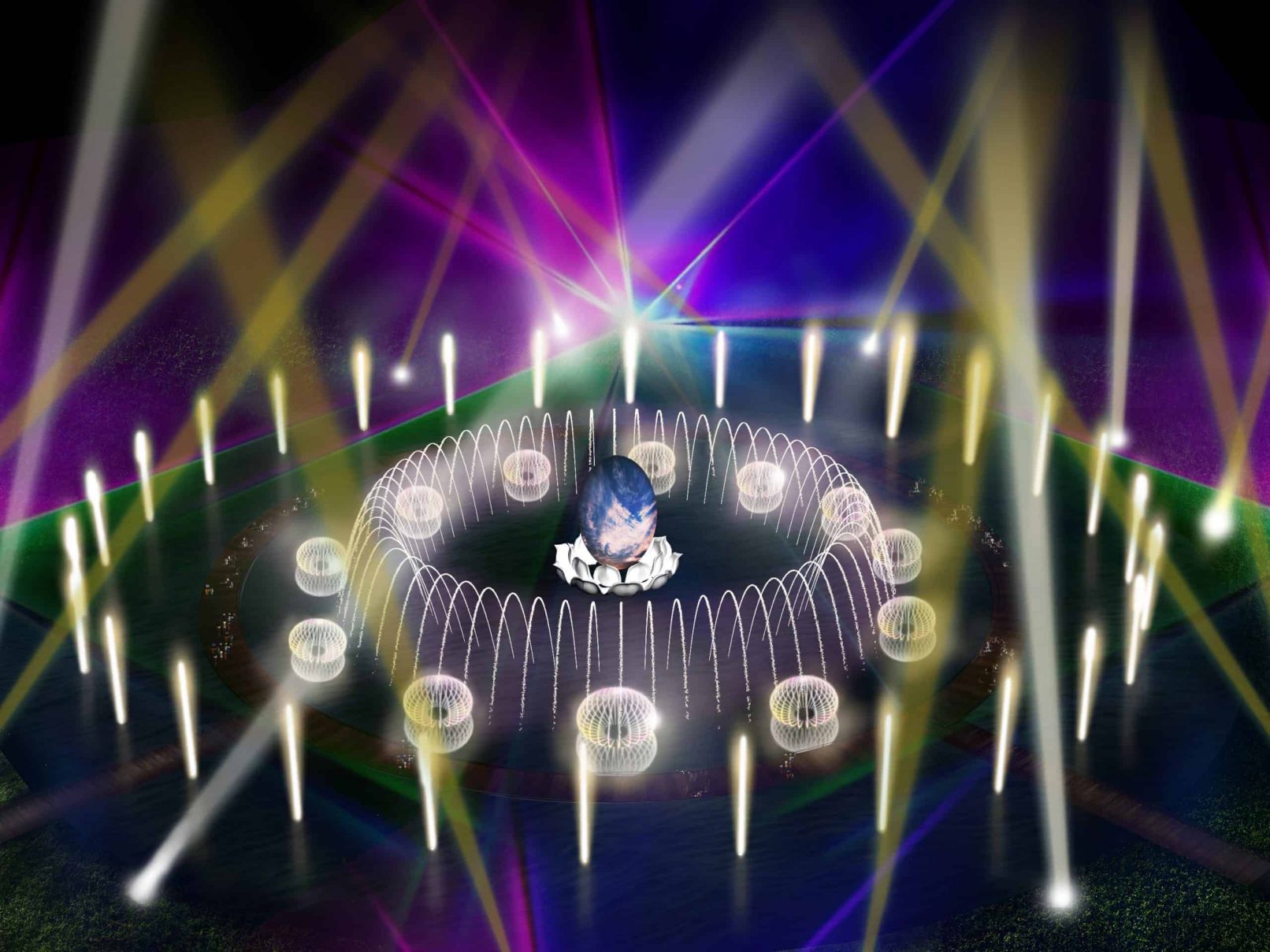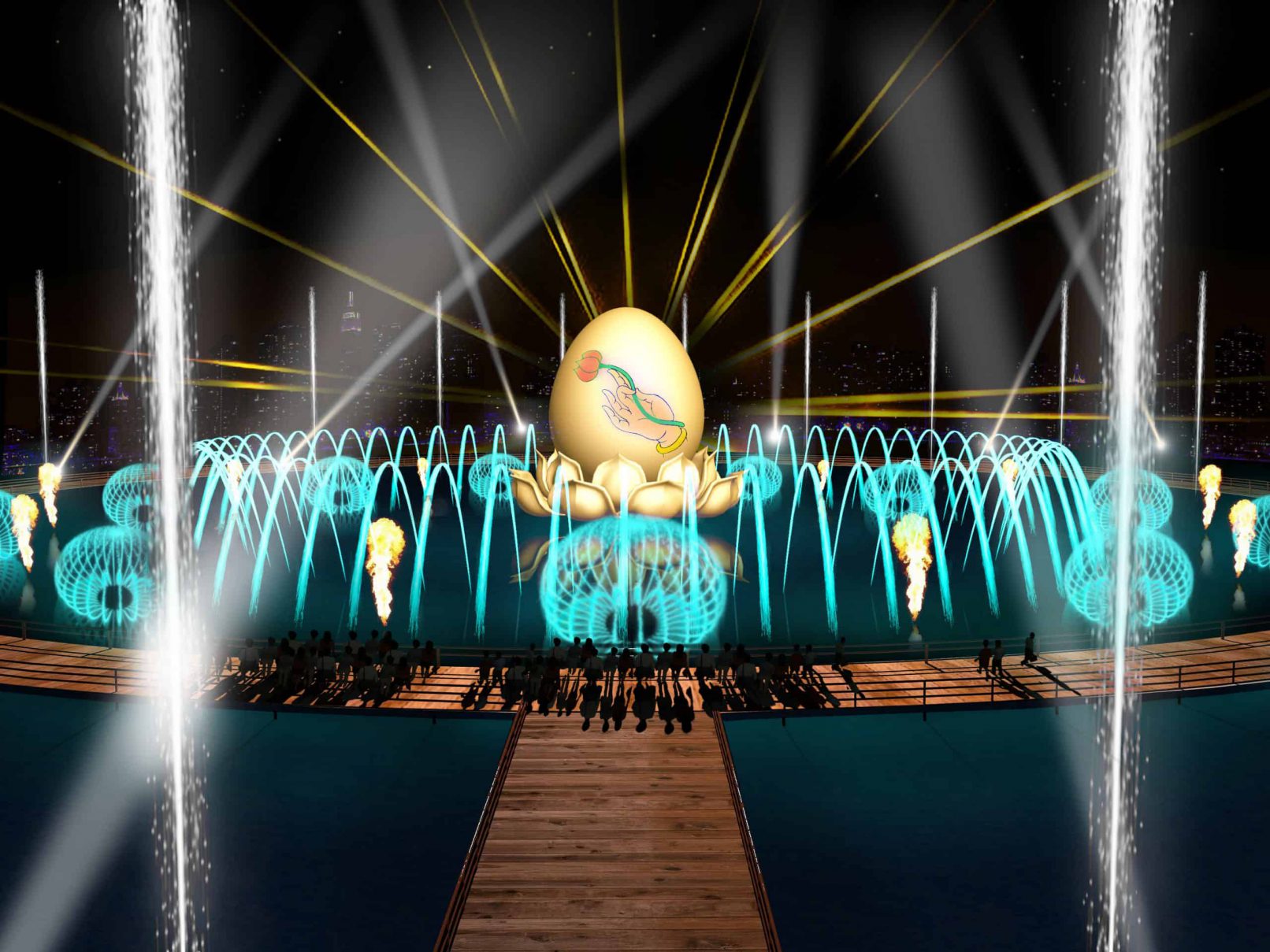 Fountain layout in the lake shows Lotus shape. Audience can see the show from inside and out of fountain. Special designed fountain in inner water area are moving like blooming lotus flowers.