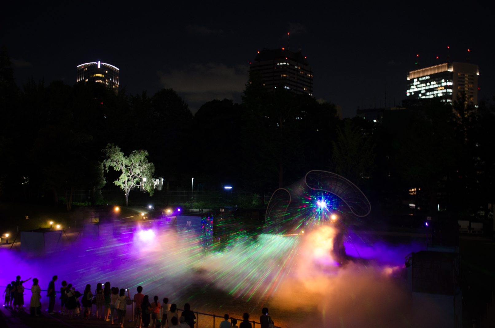 Simple configuration of the show does not disturb the garden landscape. People enjoy a moment in summer at night.