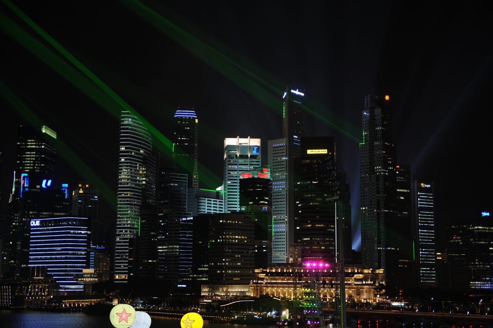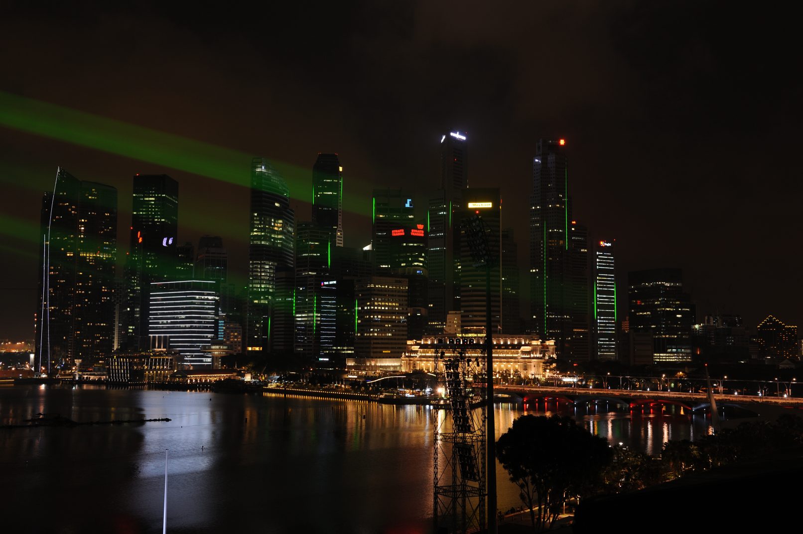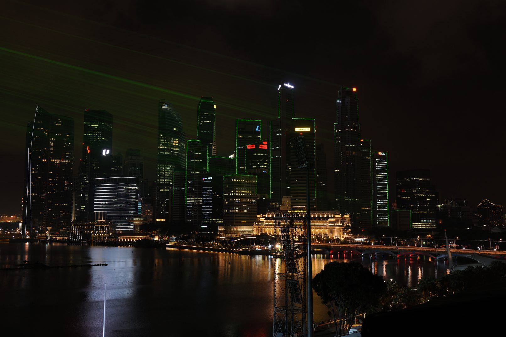 8 hi-powered lasers projection onto building where 1.2km away. Laser illuminate building edges.